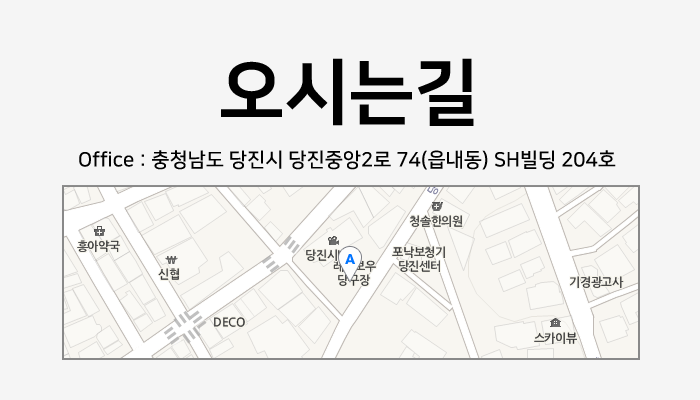 - 주소 : (31777) 충남 당진시 당진중앙2로 74 (읍내동) 건국동물병원 1층